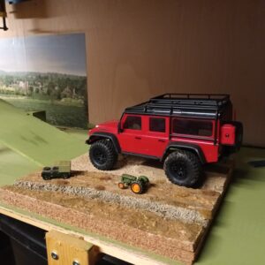 The full size Land Rover Defender is one of my favourite full sizes cars so I had to have an RC version that could take a beating, be waterproof and look fantastic. I’ve seen some people add lots of scale accessories to theirs and they look almost real life in some of the photos but I bash and roll my cars so the accessories would quickly fall off. As I drive mine in mud the standard motor did not last long so I replaced it with a Hobbywing Fusion Pro 2300kv and that made a huge difference, much faster, better control and mud/waterproof.